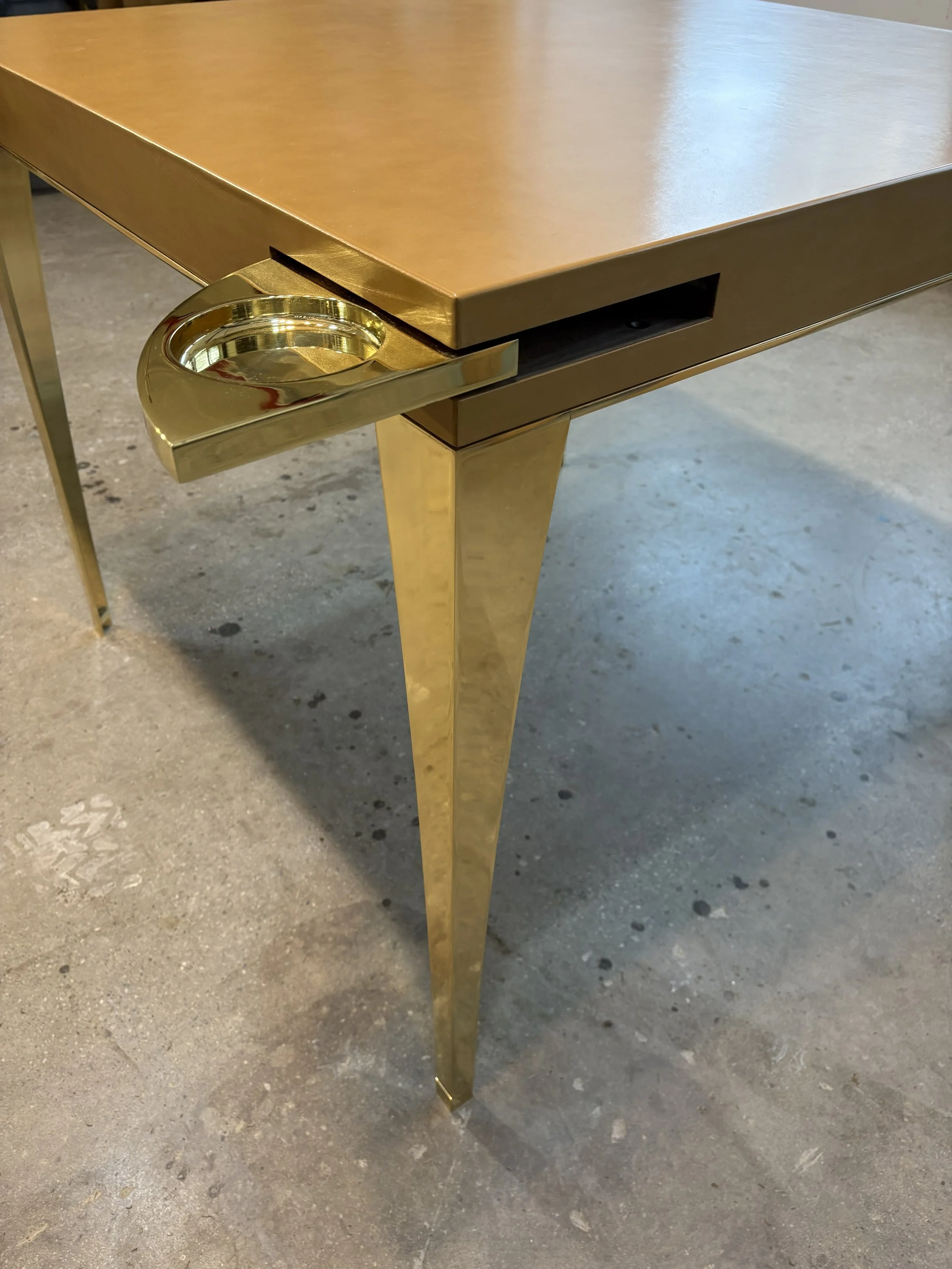Coffee Lacquer Desk with Custom Stainless Pulls